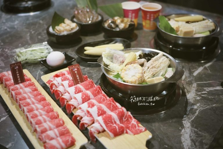 配菜有金針菇、甜玉米、玉米筍、青江菜、木耳、凍豆腐、香菇、芋頭、大白菜跟高麗菜