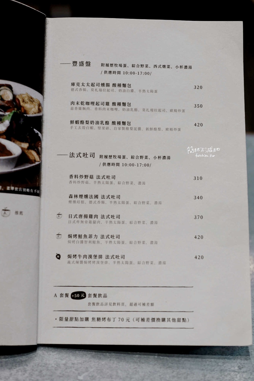 - 麵包朝午食(供應時間10:00-17:00):簡單盤 / 豐盛盤 / 法式吐司