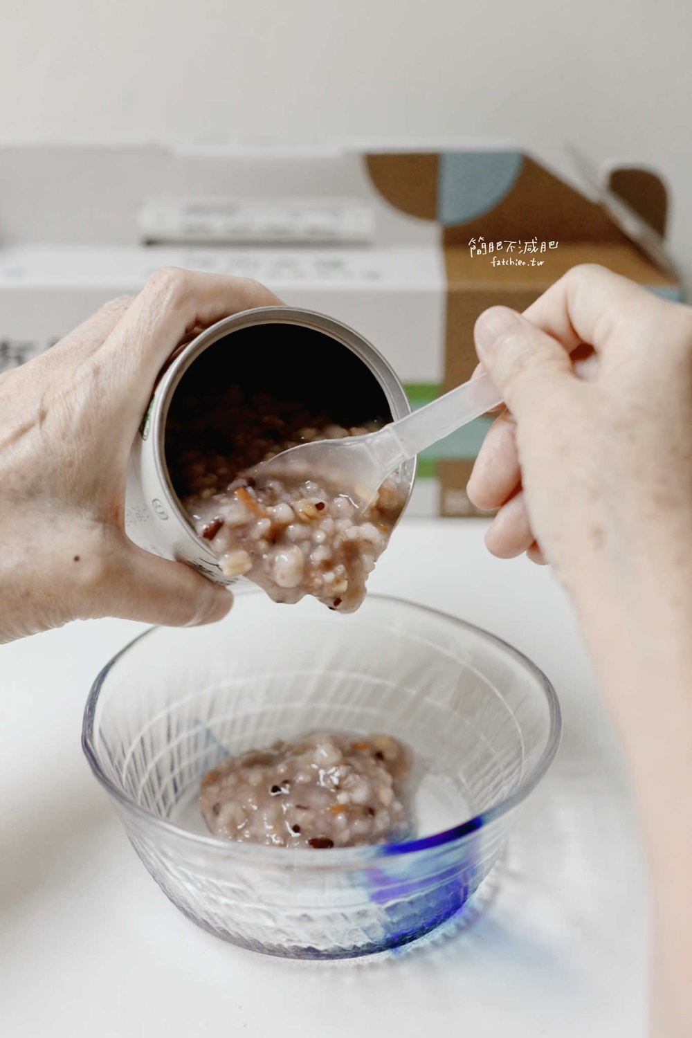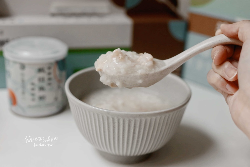 感謝簡媽出手當手模,讓大家看到一罐約 300g、料滿滿的粥,也大概是我平常在吃的份量