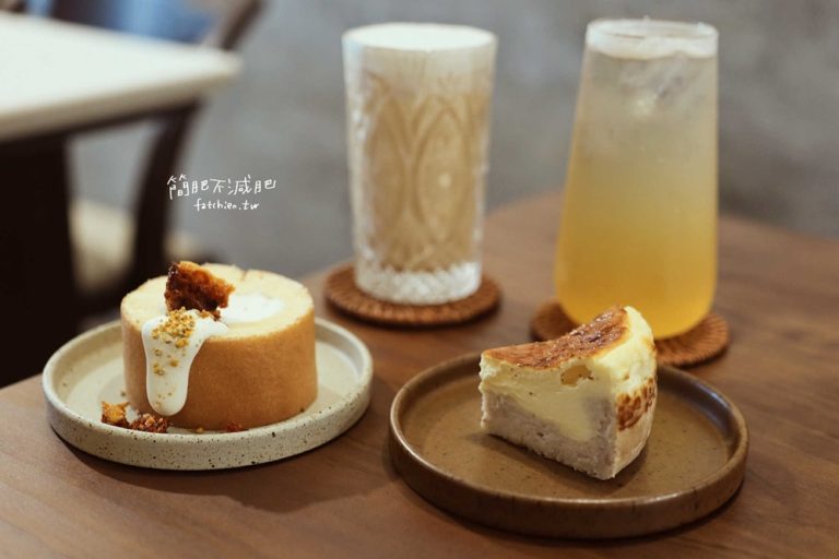甜點櫃有芋泥巴斯克、蜂蜜生乳捲、可麗露、奶油蜂蜜