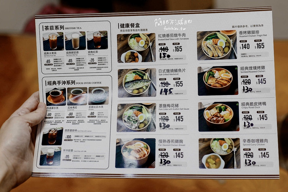 菜單上的主餐選項有8種,店內價跟外帶自取價格一樣,餐盒一份130-150元