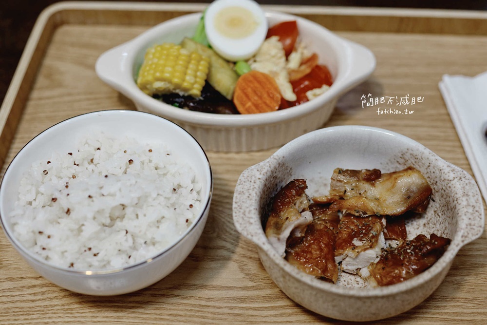 紅藜麥飯+蔬菜盤+主食肉類,這份雞腿排是我吃的😋😋😋