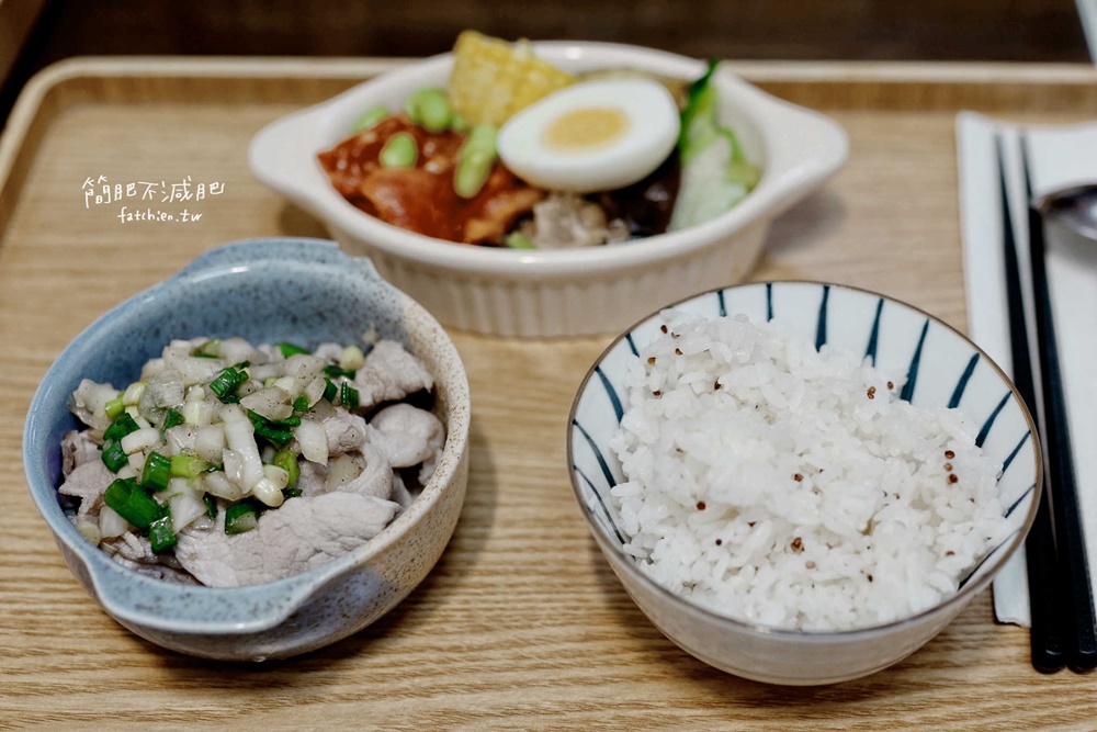 簡媽點蔥鹽梅花豬,除了主食不同之外,其餘的配菜都一樣