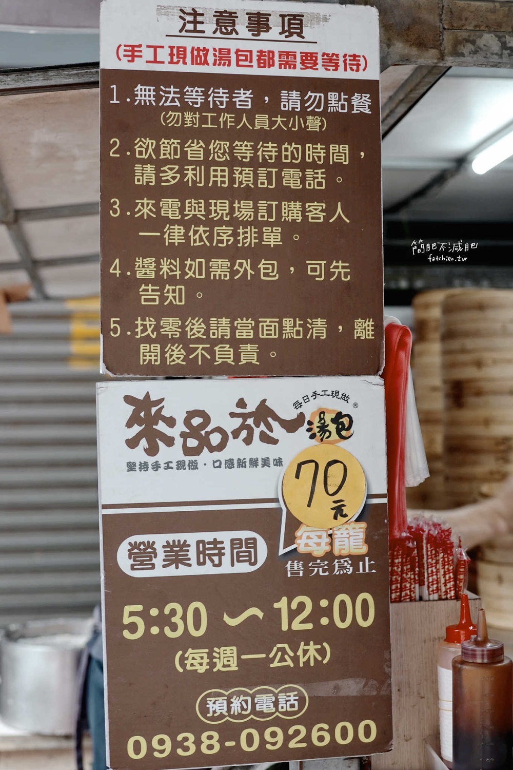 來品於湯包是攤車形式,在安歆護理之家前的騎樓,靠近花壇火車站與花壇菜市場一帶