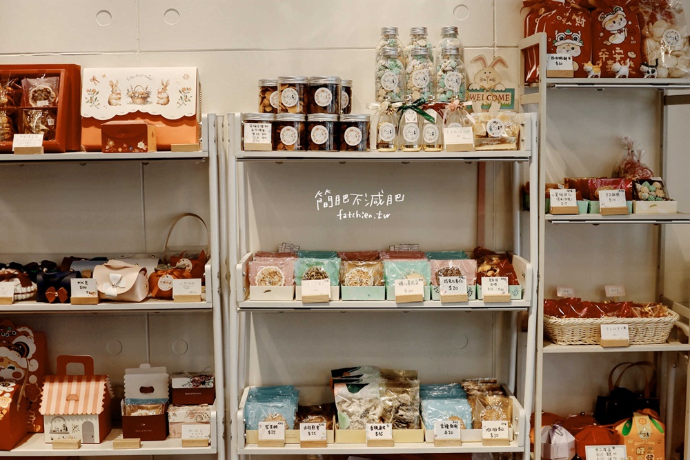 接著另一面層架上則是滿滿的常溫餅乾與甜點禮盒們