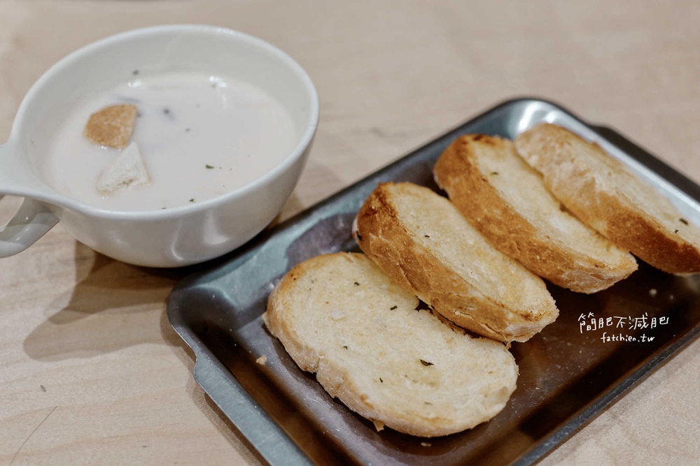 義大利麵與燉飯類都會附濃湯和麵包,麵包一份是一片