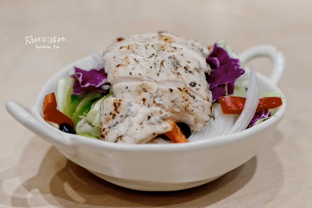 舒肥雞胸正常表現,不過沙拉就沒有附濃湯跟麵包唷