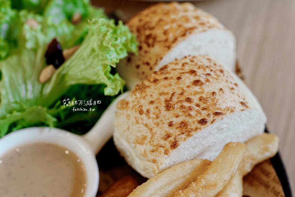 麵包應該是帕瑪森吐司,感覺可以附個奶油抹醬,不然會有一點乾