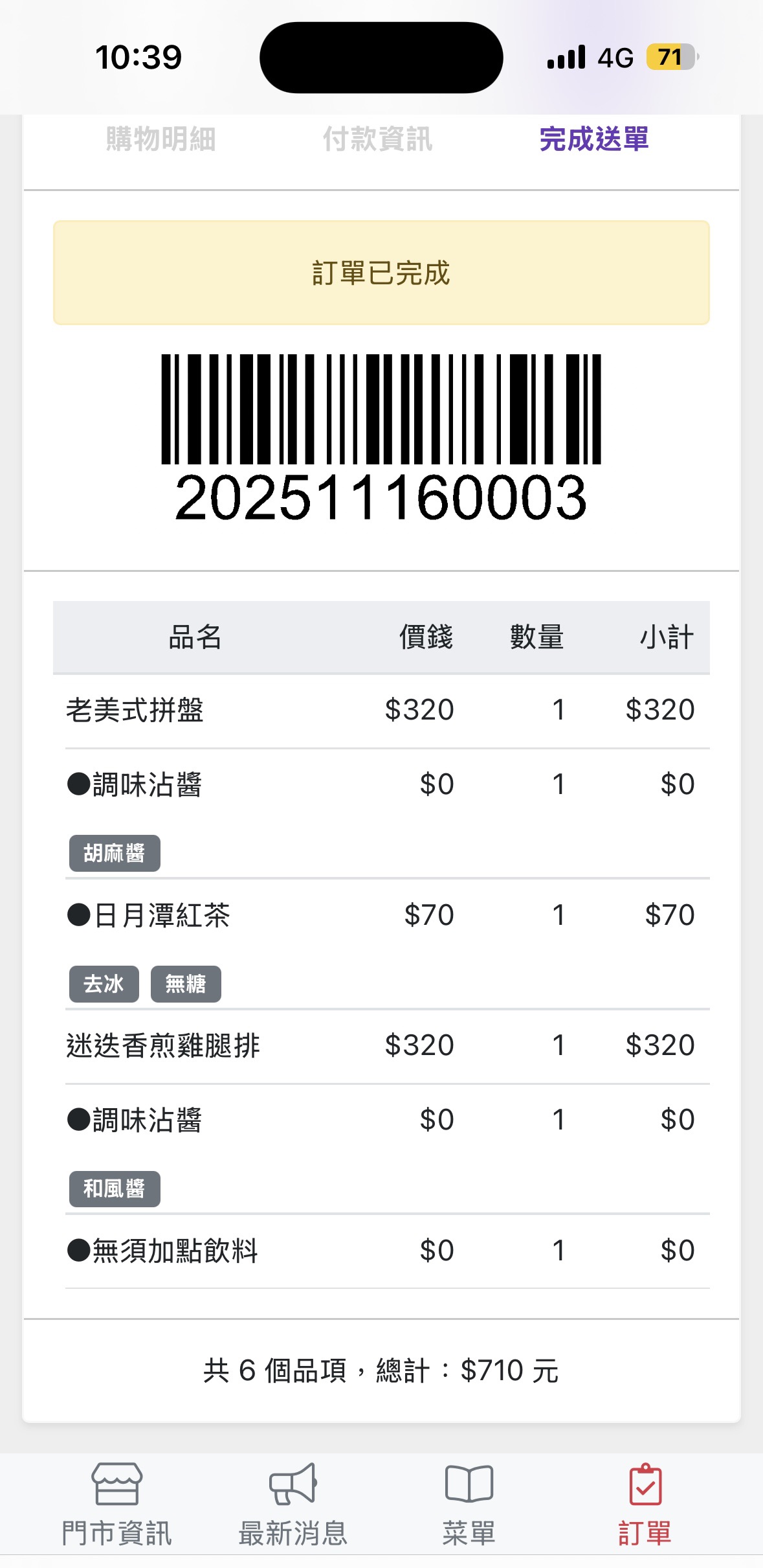 點餐須掃餐桌上的QR code,送出訂單後再到櫃台結帳;目前僅收現金,有開發票也有載具